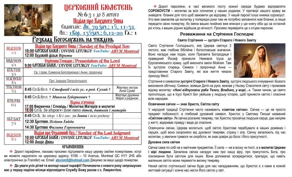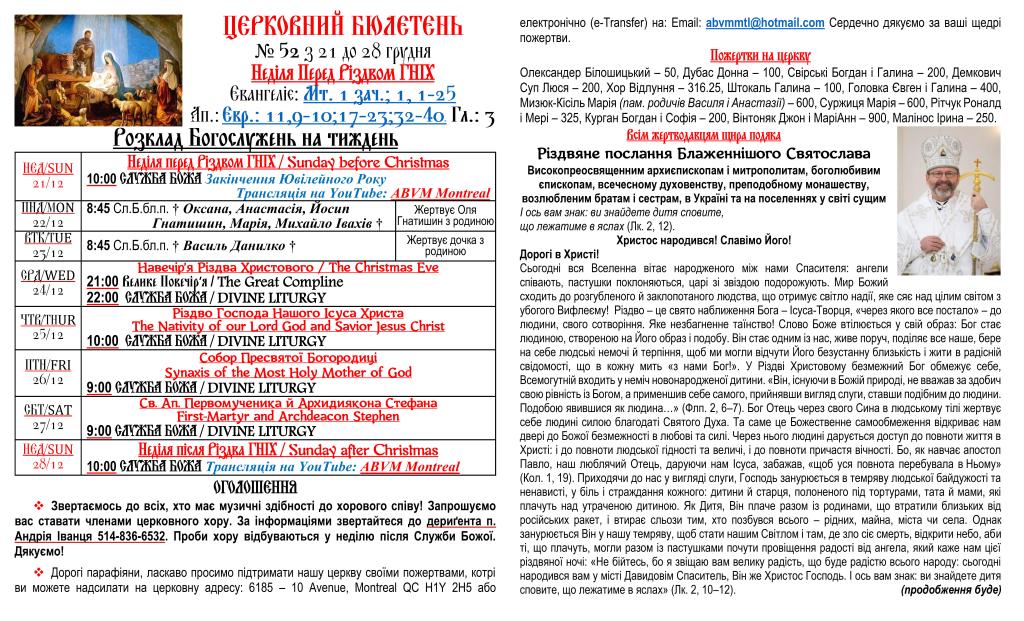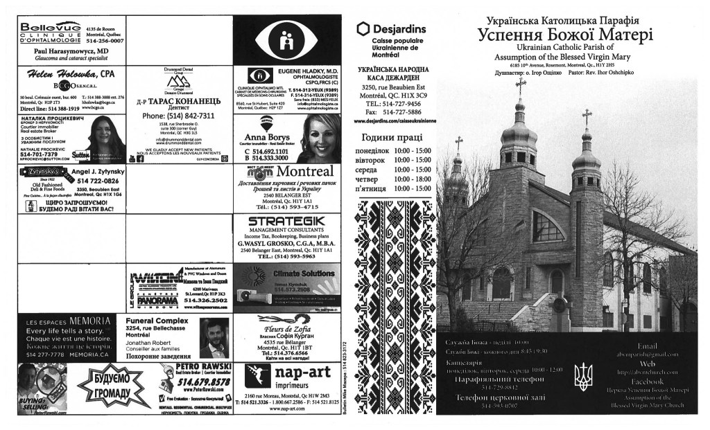 Вас вітає Українська Греко-Католицька Парохія Успення Божої Матері в Монреалі і ласкаво запрошує до своєї церковної родини.