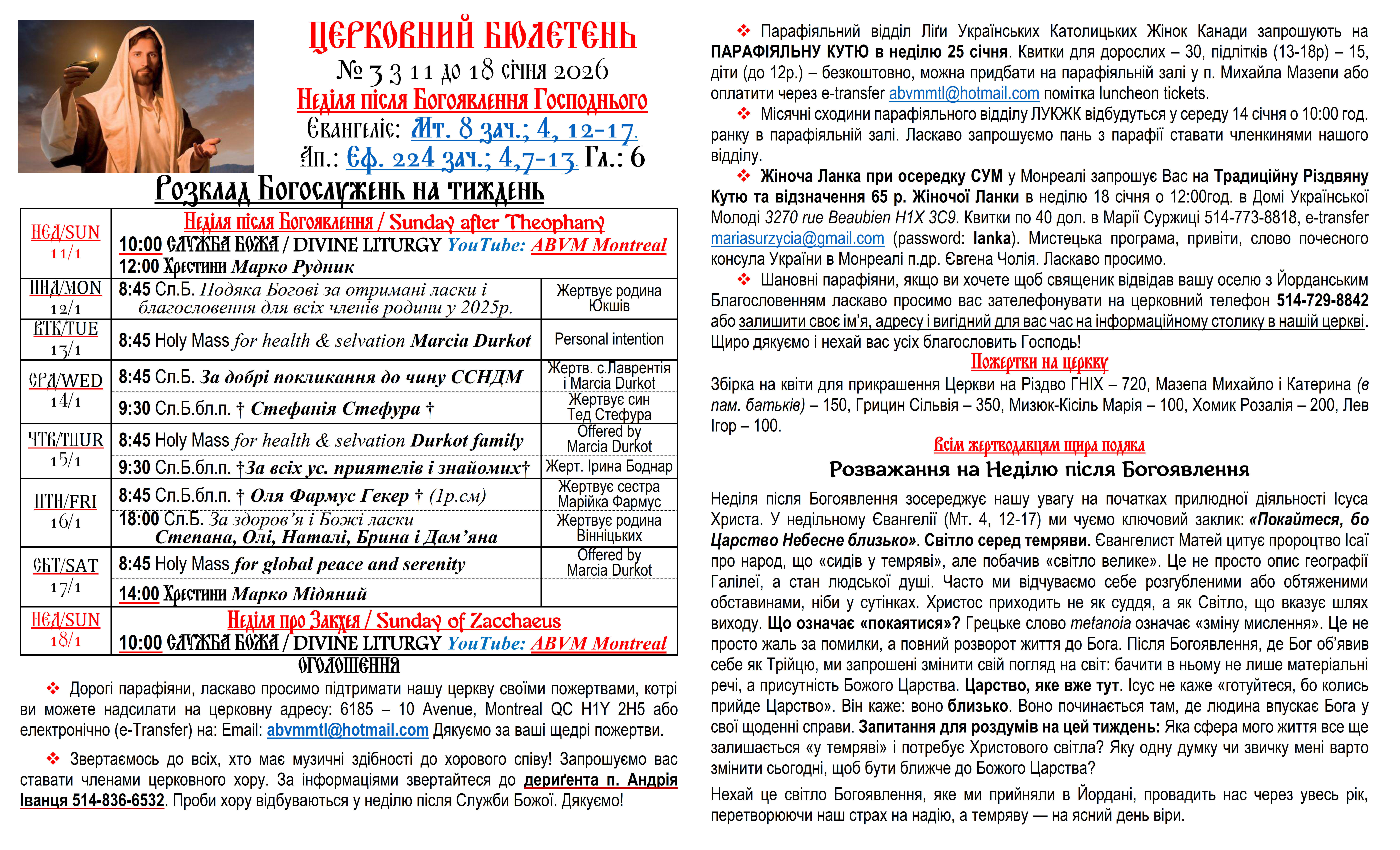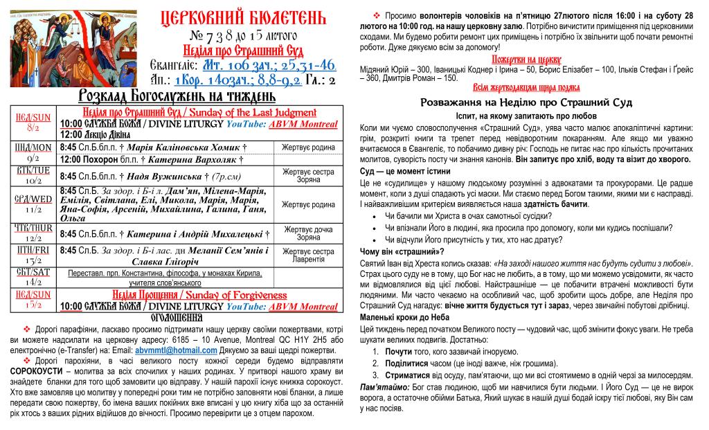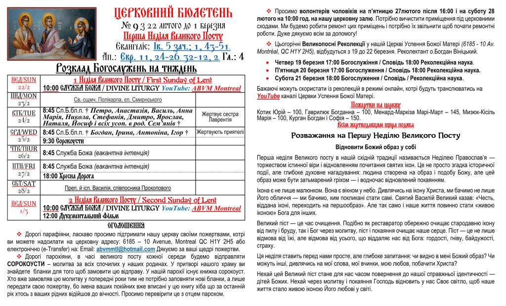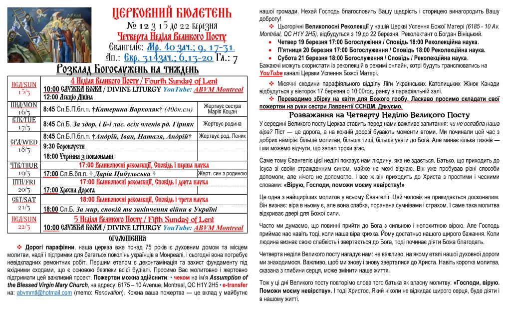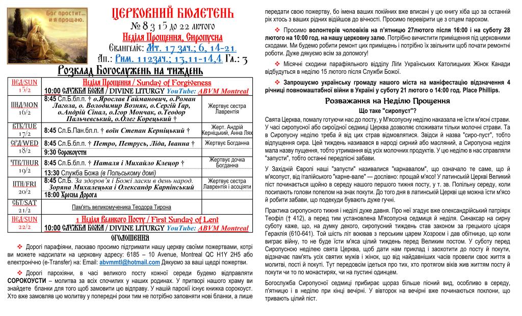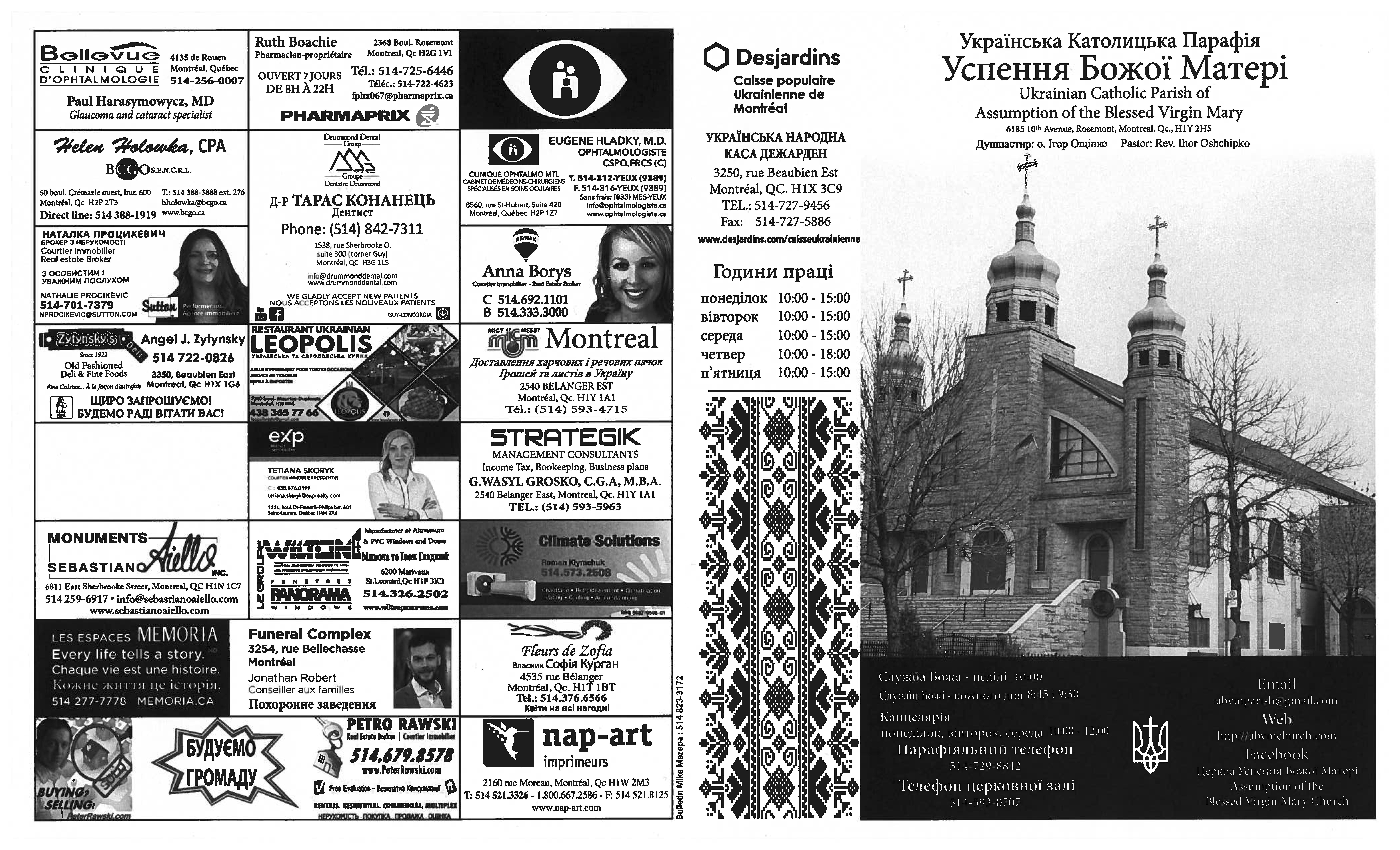 Вас вітає Українська Греко-Католицька Парохія Успення Божої Матері в Монреалі і ласкаво запрошує до своєї церковної родини.