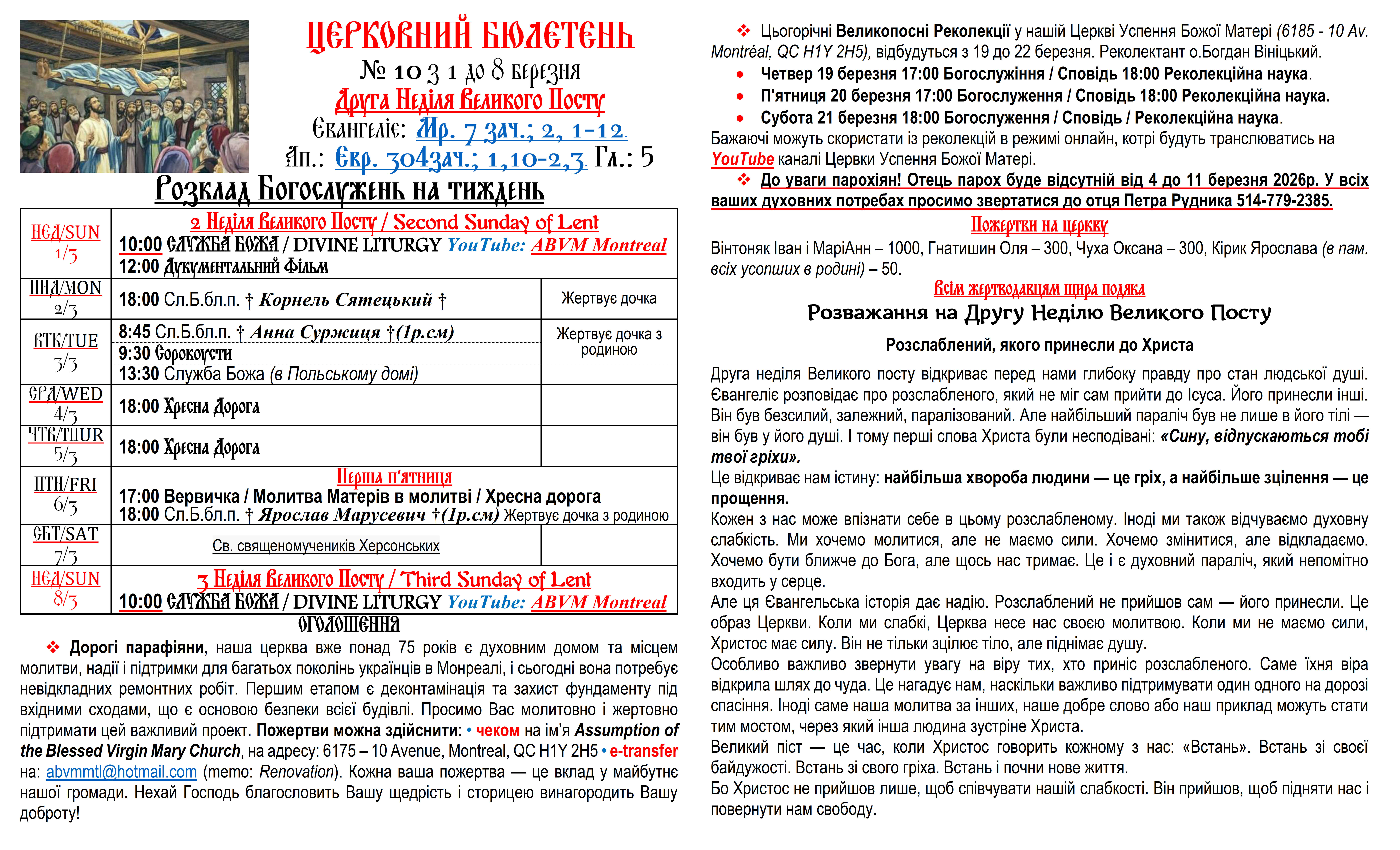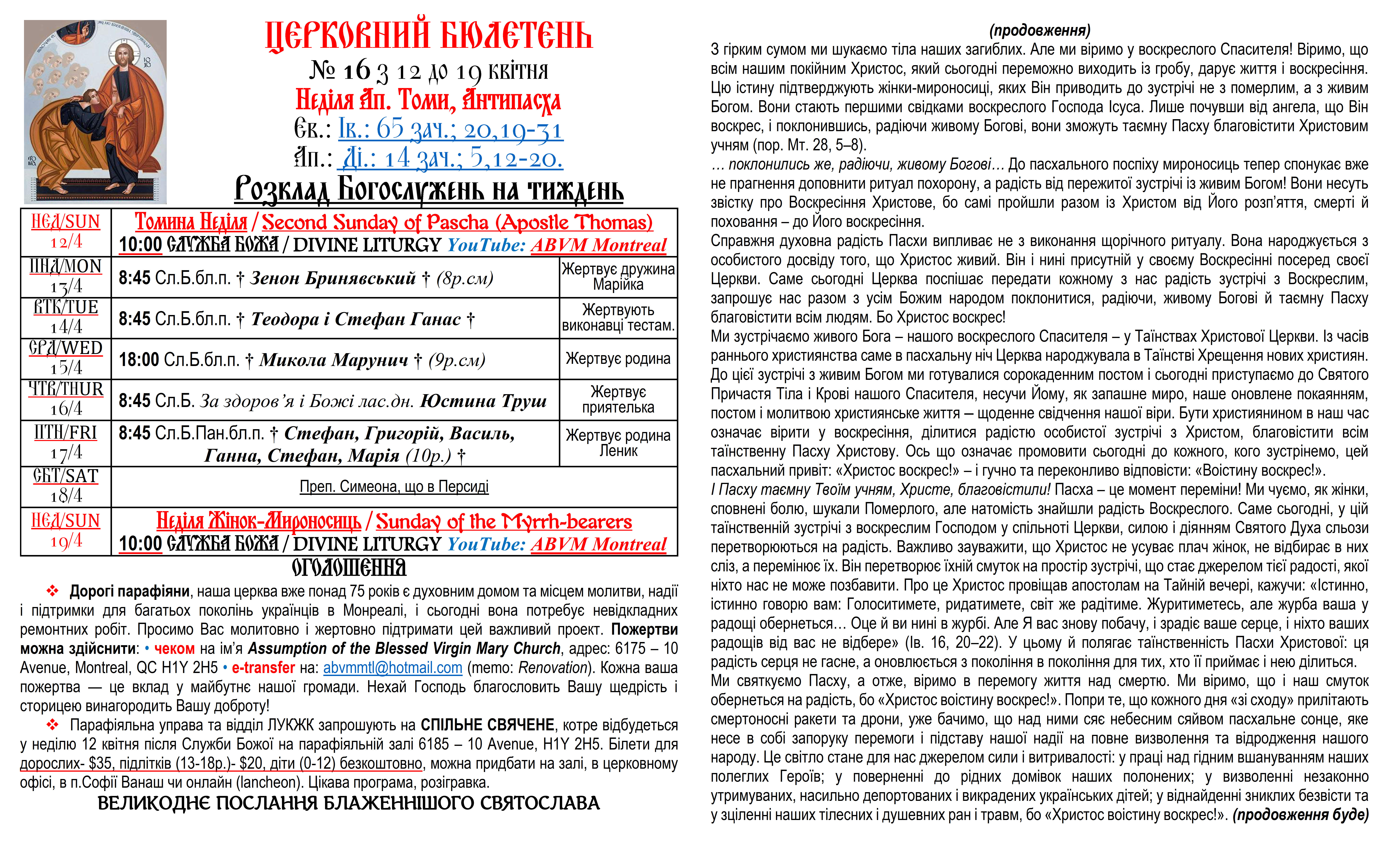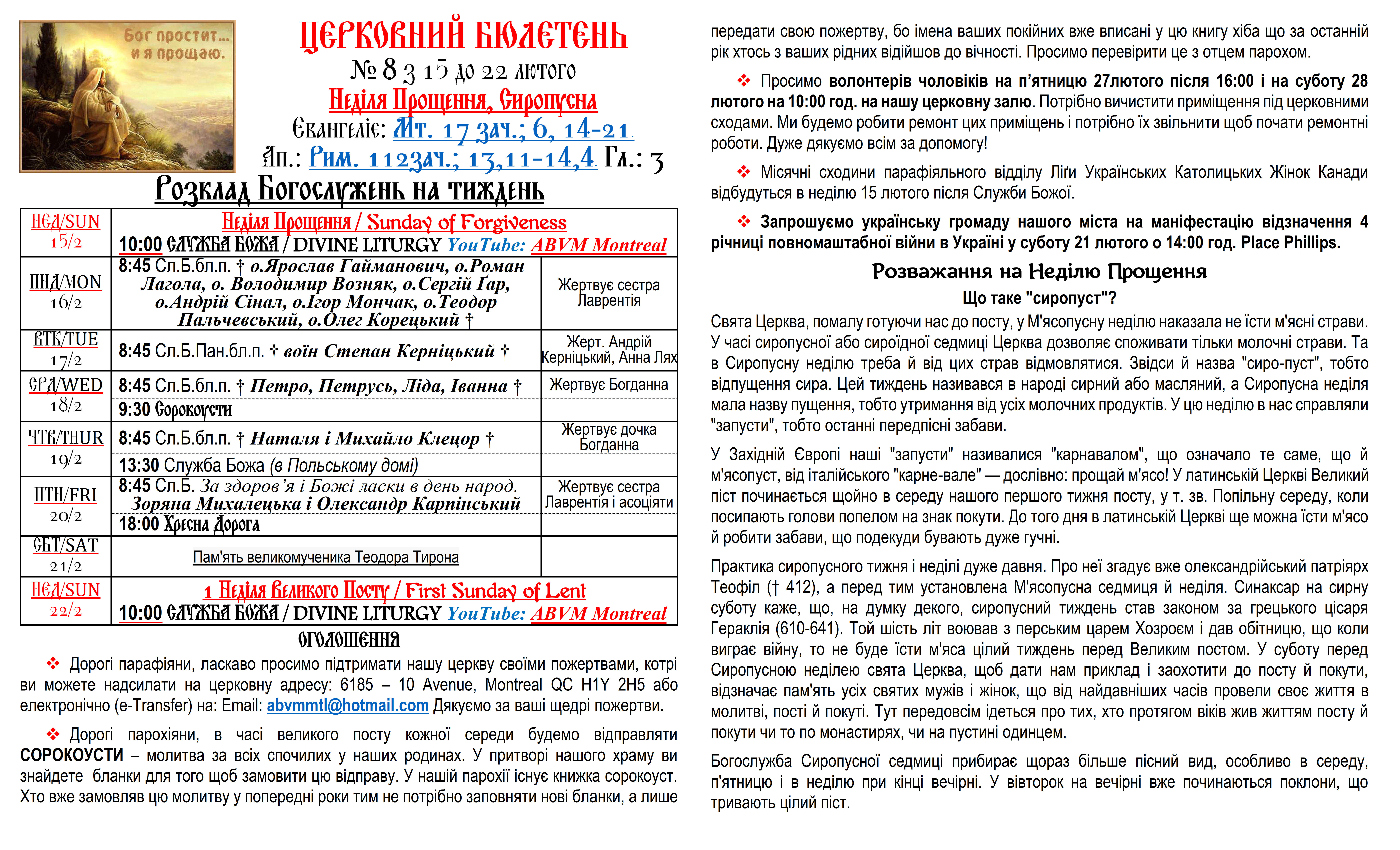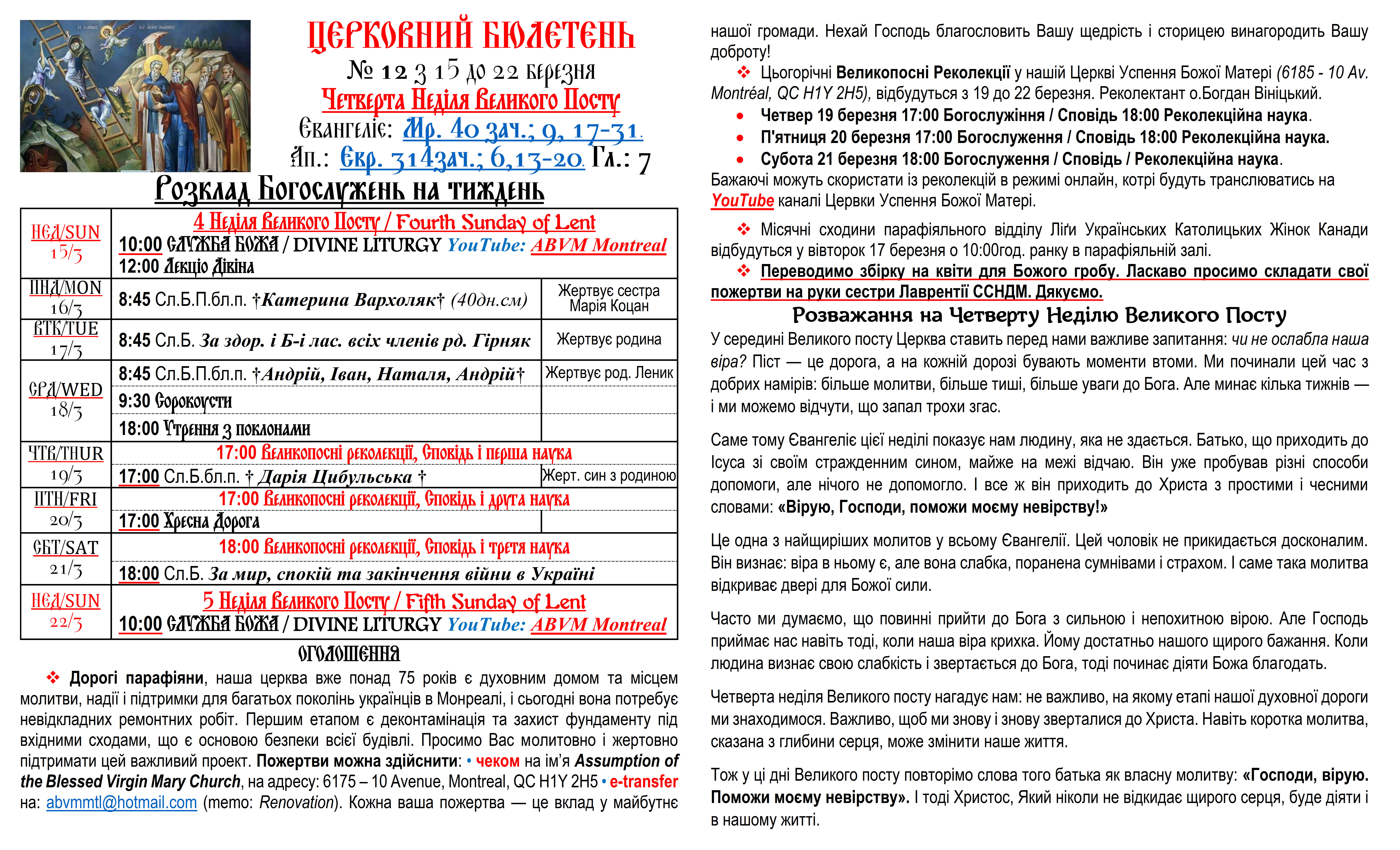 Вас вітає Українська Греко-Католицька Парохія Успення Божої Матері в Монреалі і ласкаво запрошує до своєї церковної родини.