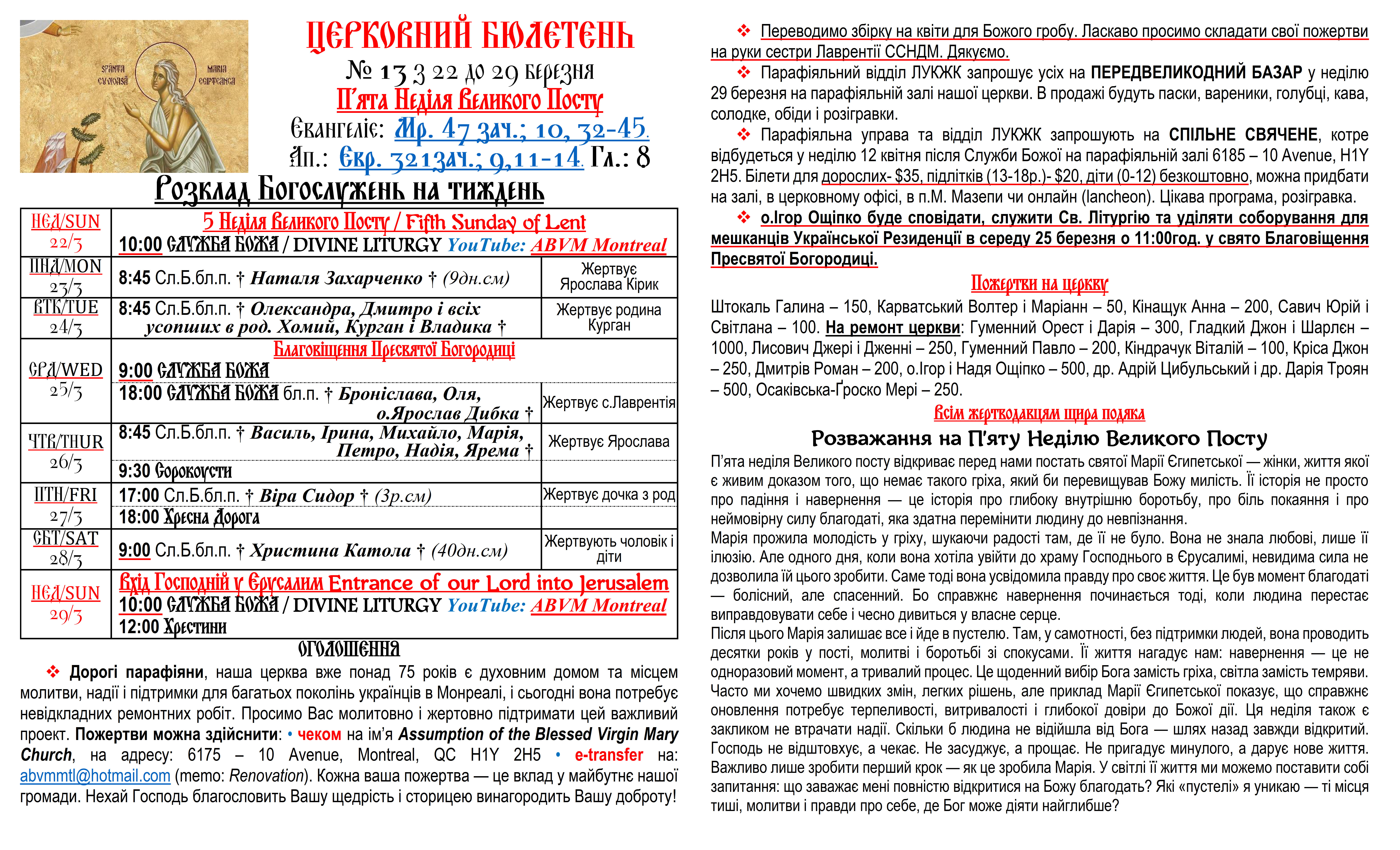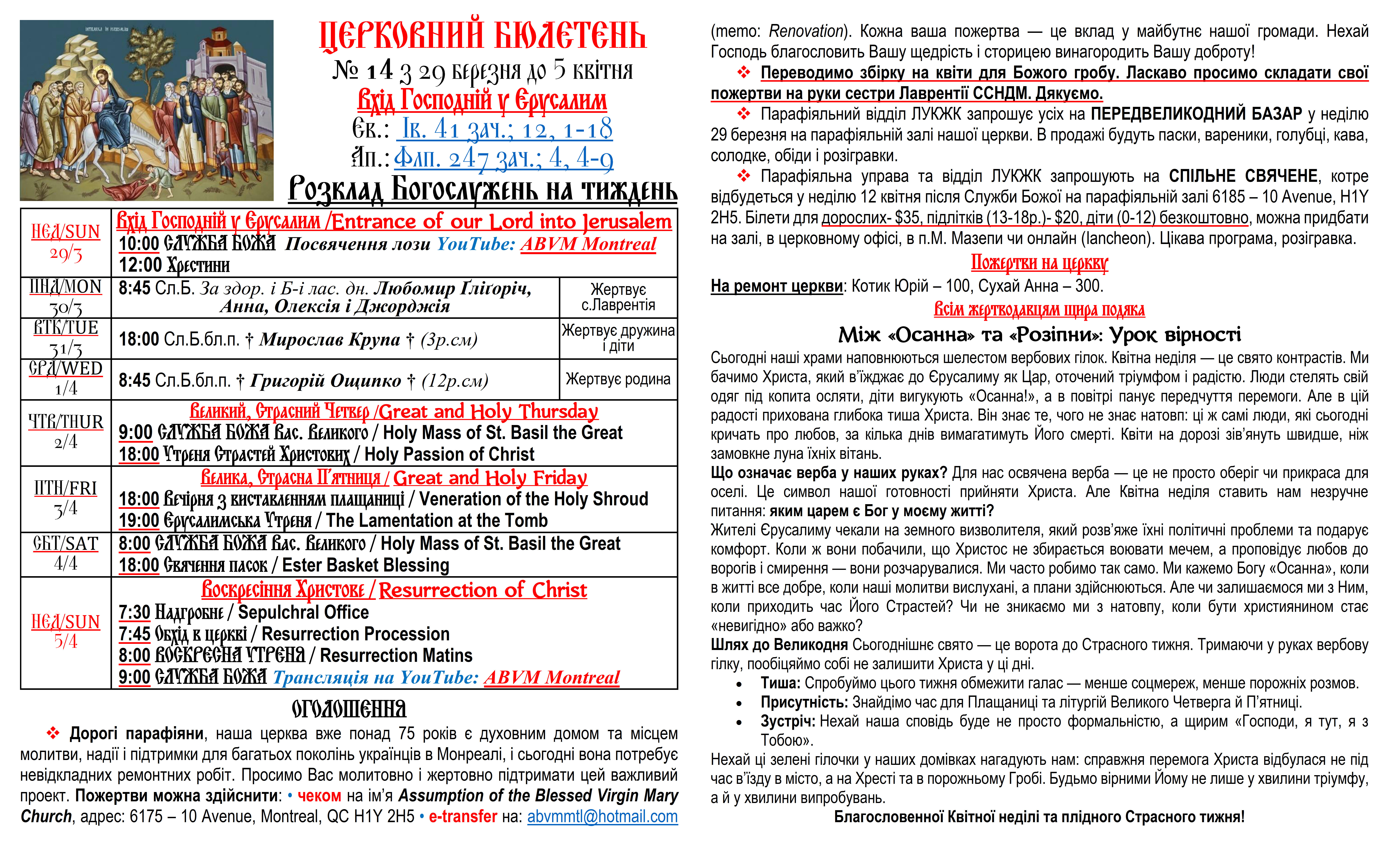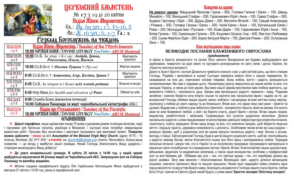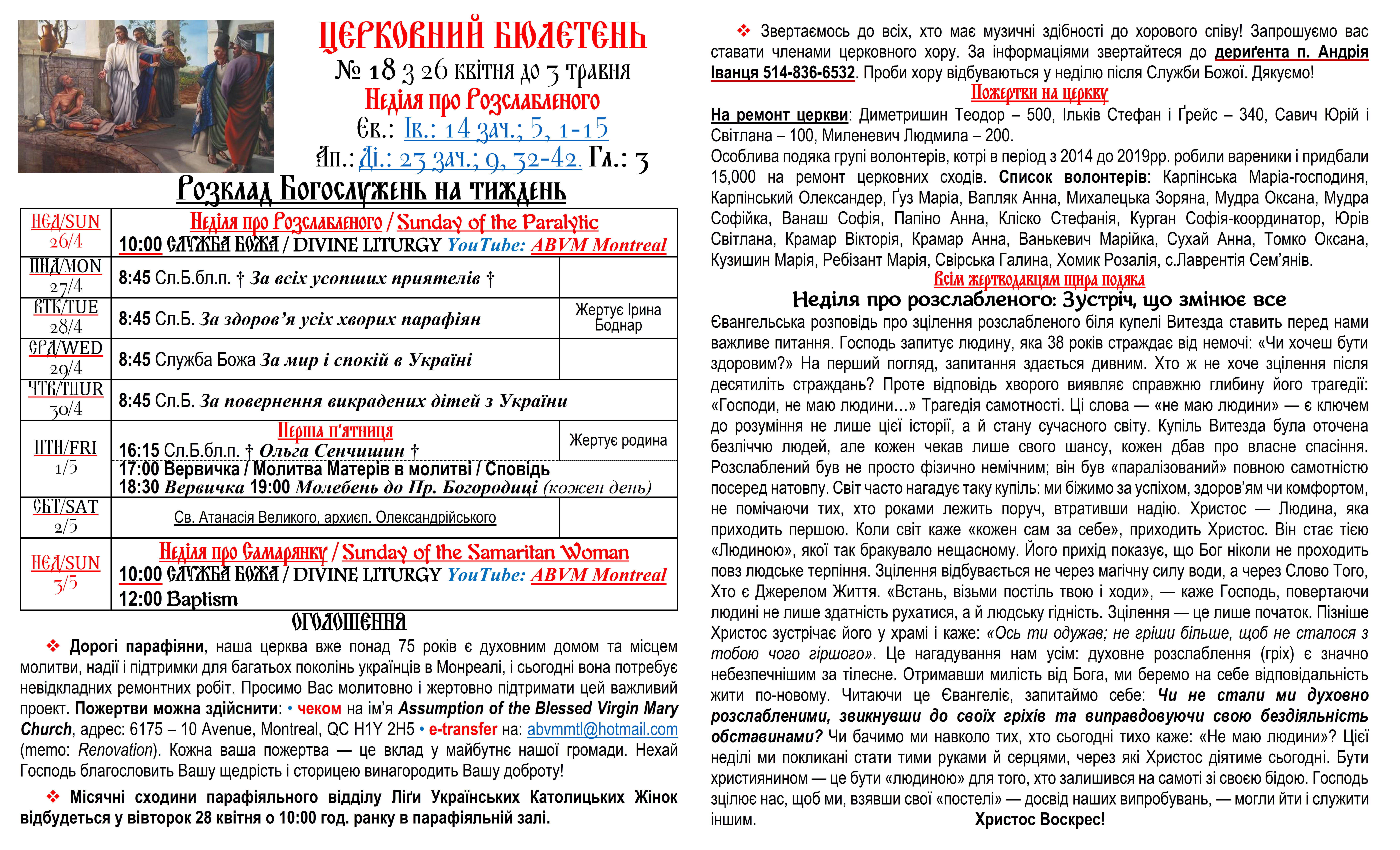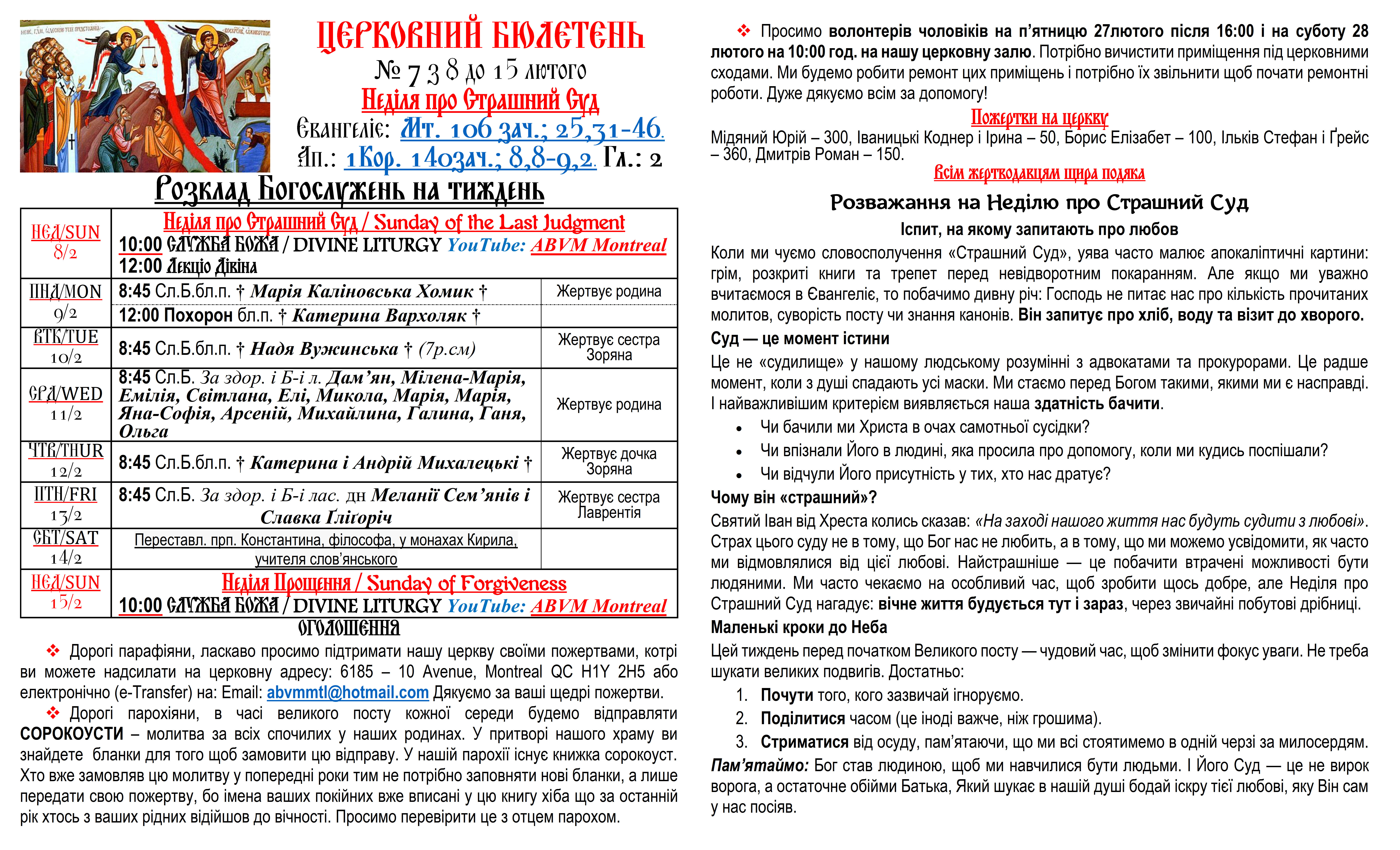 Вас вітає Українська Греко-Католицька Парохія Успення Божої Матері в Монреалі і ласкаво запрошує до своєї церковної родини.