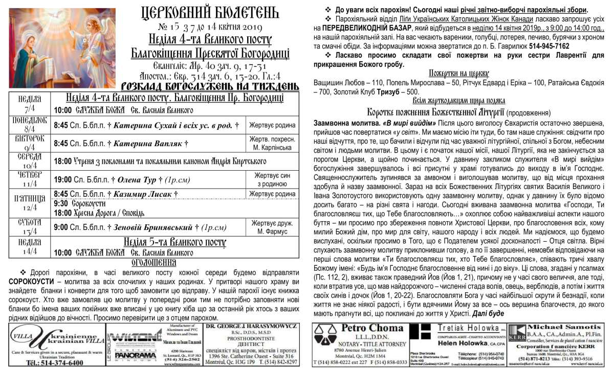 Rev. Ihor Oshchipko – Pastor 6175 10th Ave. Montreal, QC H1Y 2H5