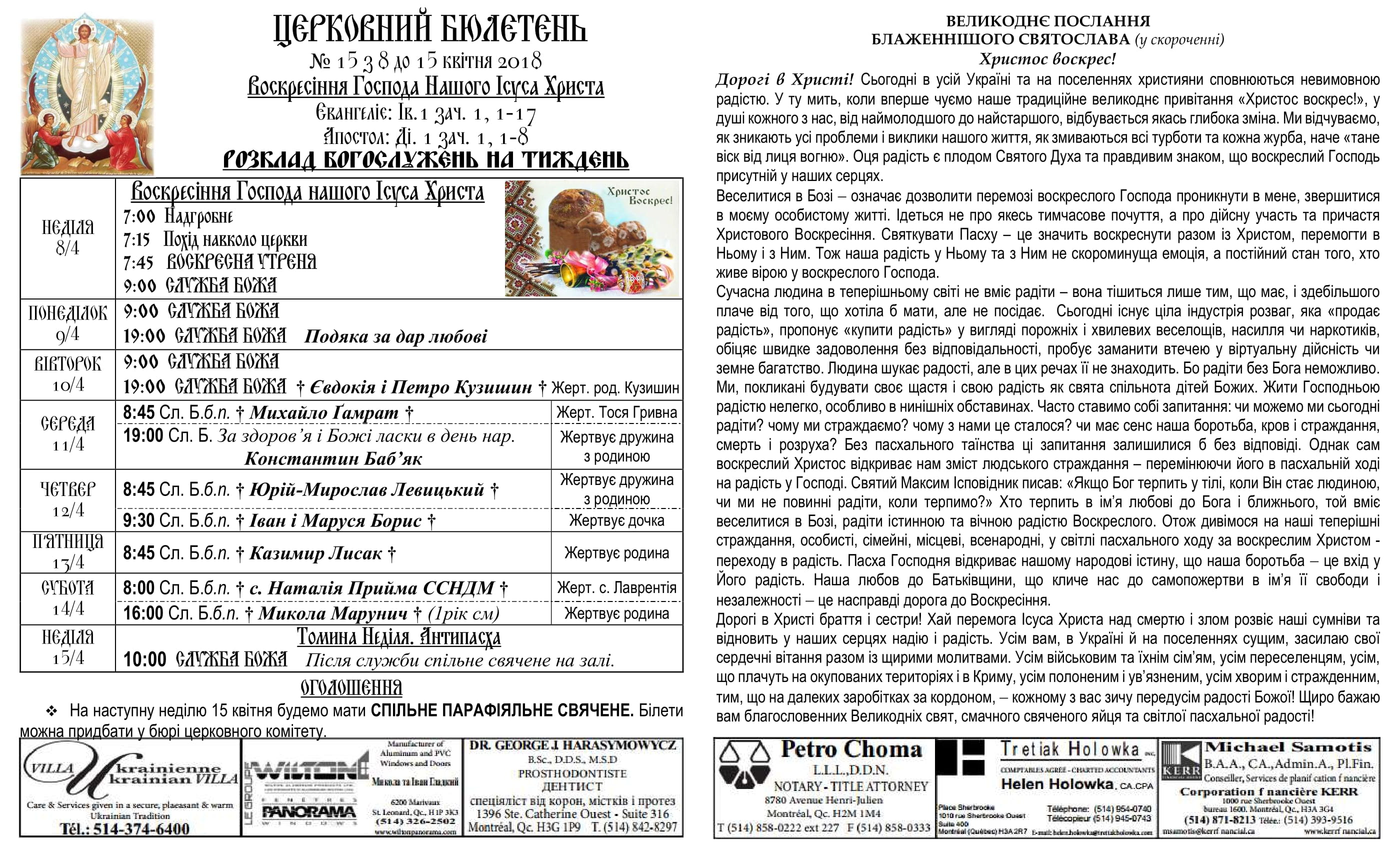 Rev. Ihor Oshchipko – Pastor 6175 10th Ave. Montreal, QC H1Y 2H5