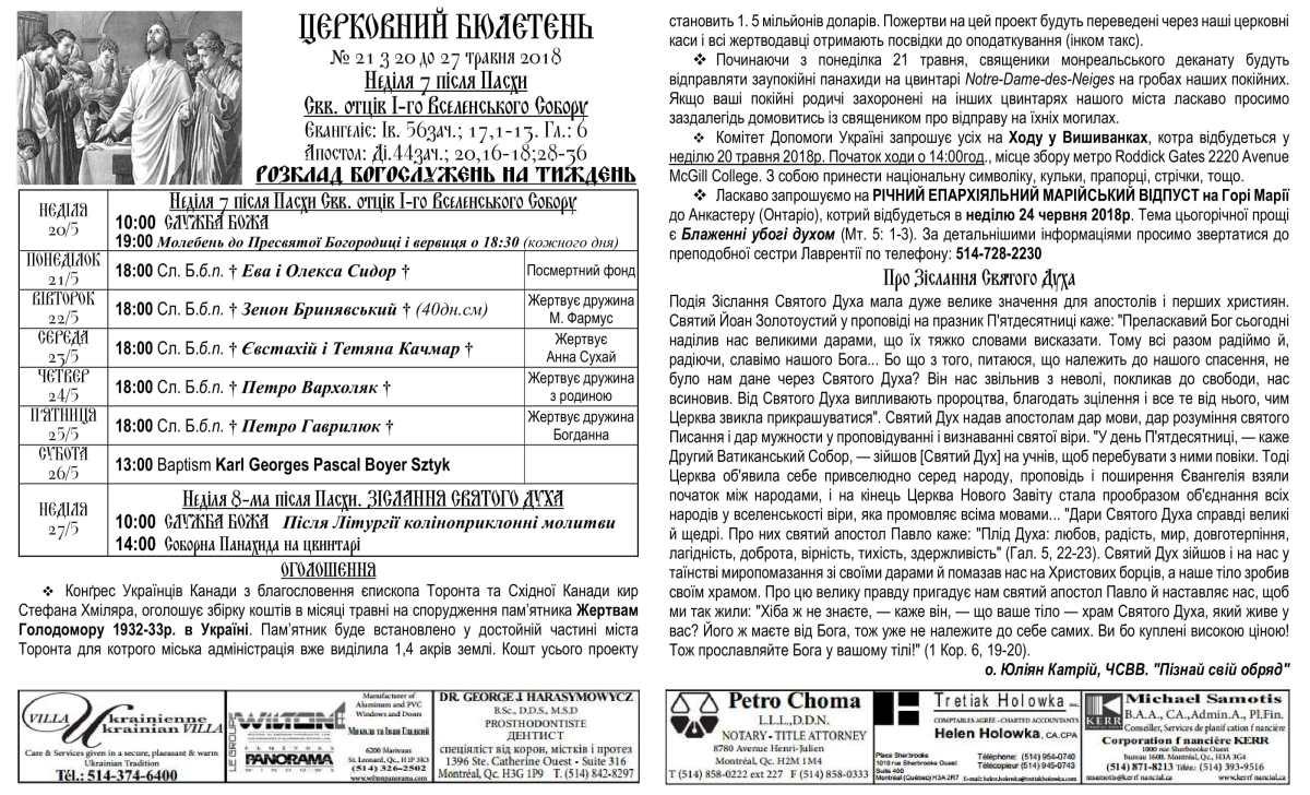 Rev. Ihor Oshchipko – Pastor 6175 10th Ave. Montreal, QC H1Y 2H5