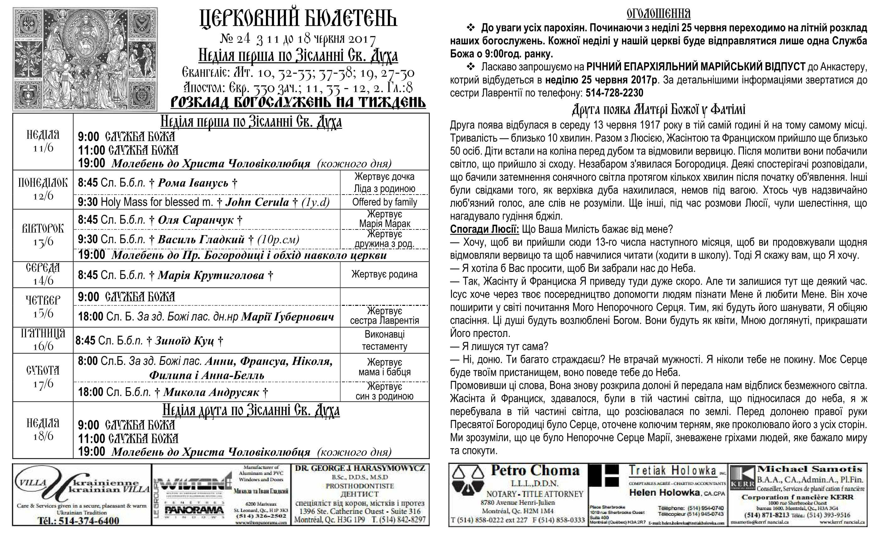 Rev. Ihor Oshchipko – Pastor 6175 10th Ave. Montreal, QC H1Y 2H5