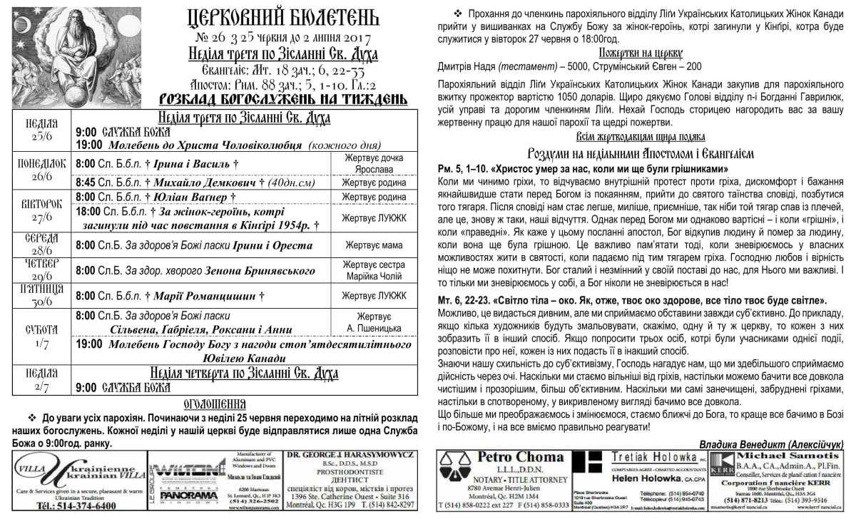 Rev. Ihor Oshchipko – Pastor 6175 10th Ave. Montreal, QC H1Y 2H5