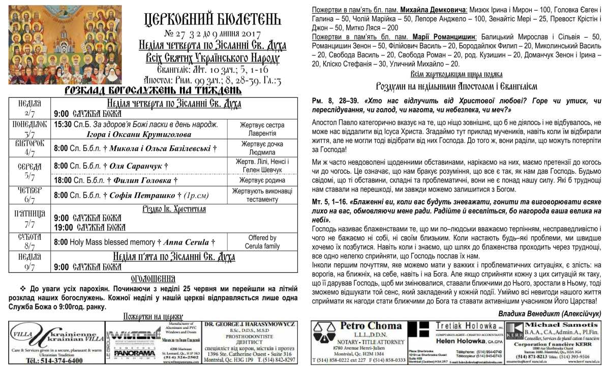 Rev. Ihor Oshchipko – Pastor 6175 10th Ave. Montreal, QC H1Y 2H5