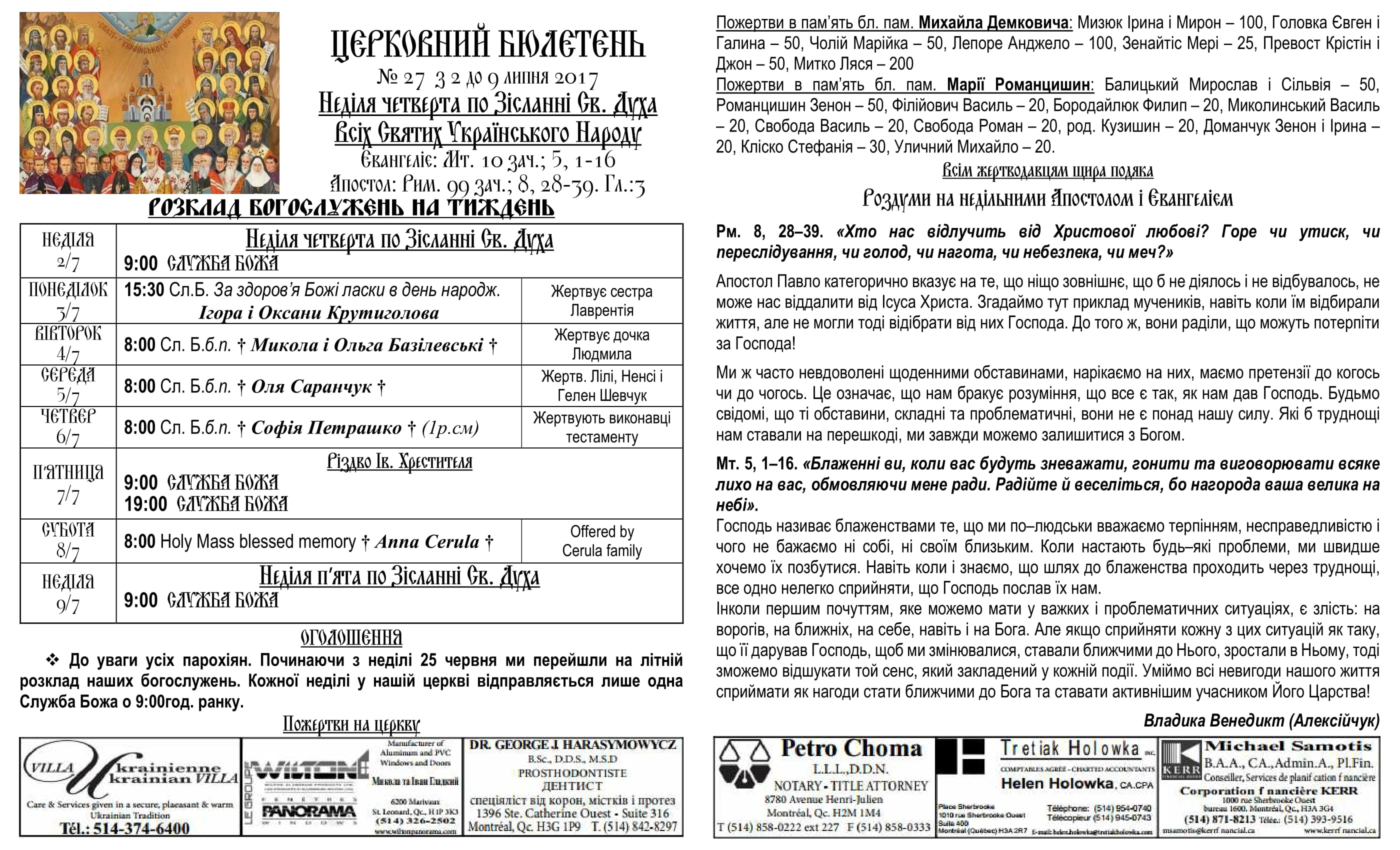 Rev. Ihor Oshchipko – Pastor 6175 10th Ave. Montreal, QC H1Y 2H5