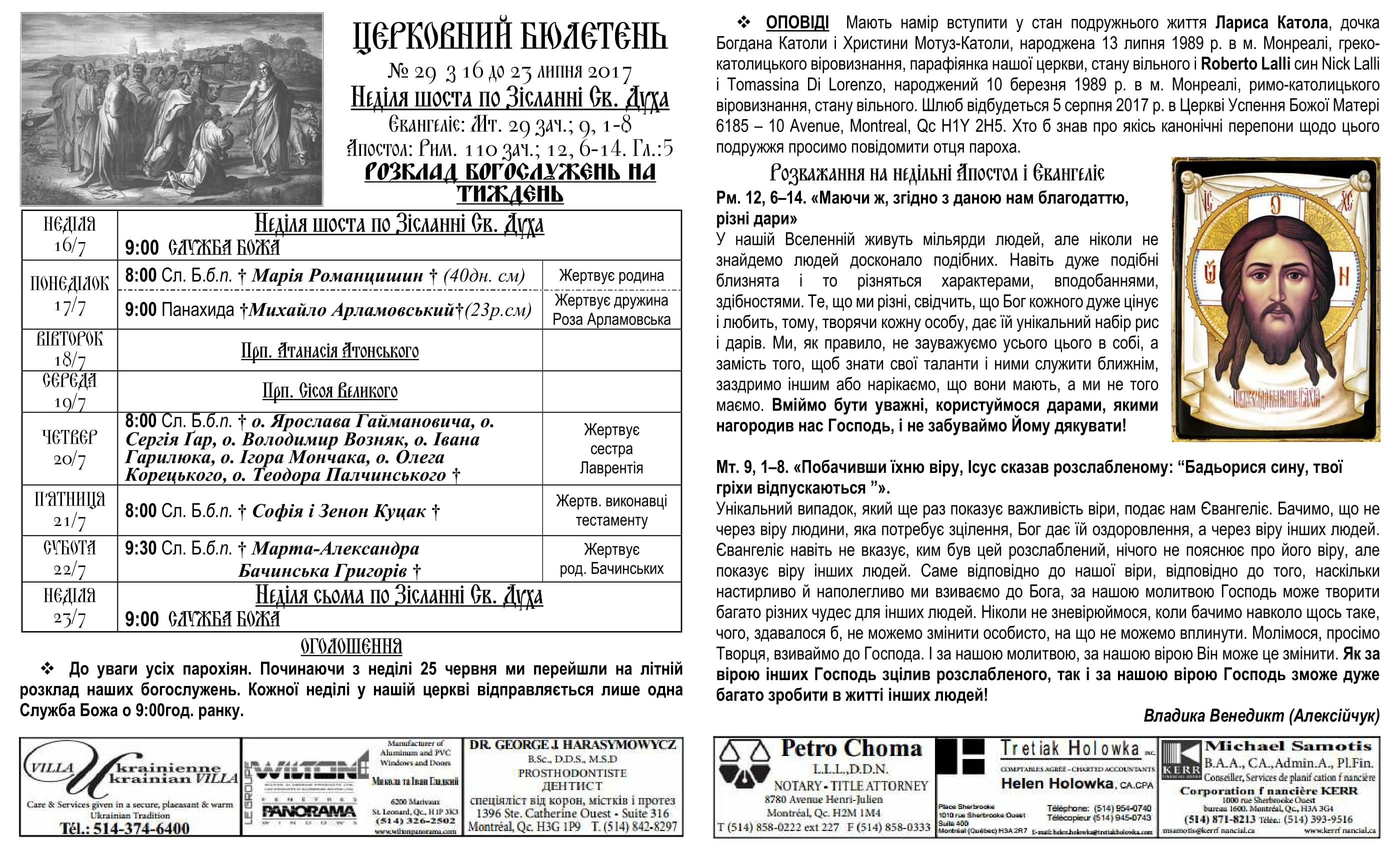 Rev. Ihor Oshchipko – Pastor 6175 10th Ave. Montreal, QC H1Y 2H5