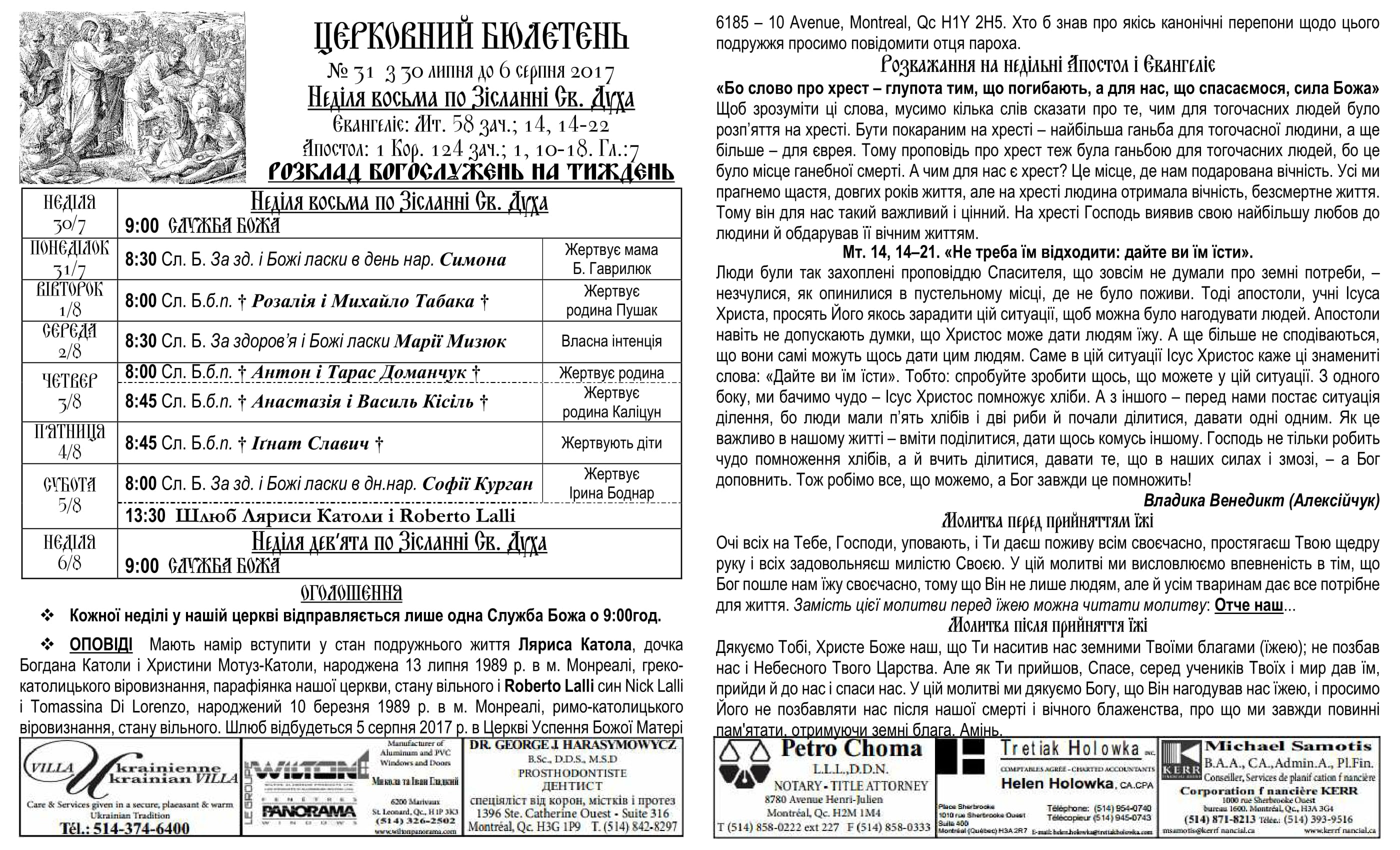Rev. Ihor Oshchipko – Pastor 6175 10th Ave. Montreal, QC H1Y 2H5