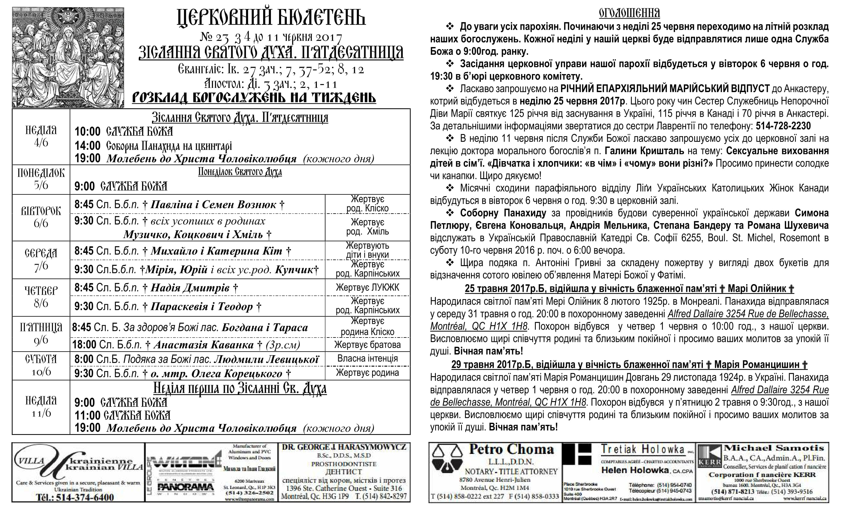 Rev. Ihor Oshchipko – Pastor 6175 10th Ave. Montreal, QC H1Y 2H5