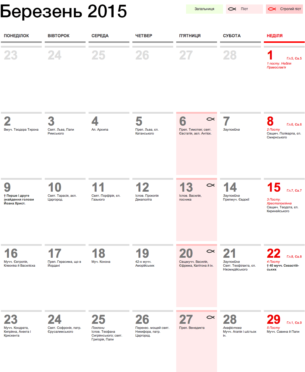 Церковний календар Української Греко-Католицької Церкви для мобільних пристроїв може бути завантажений в App Store або Google PlayВиберіть для себе вигляд календаря – режим “день” з розширеної інформацією, чи режим “місяць” зі скороченою.