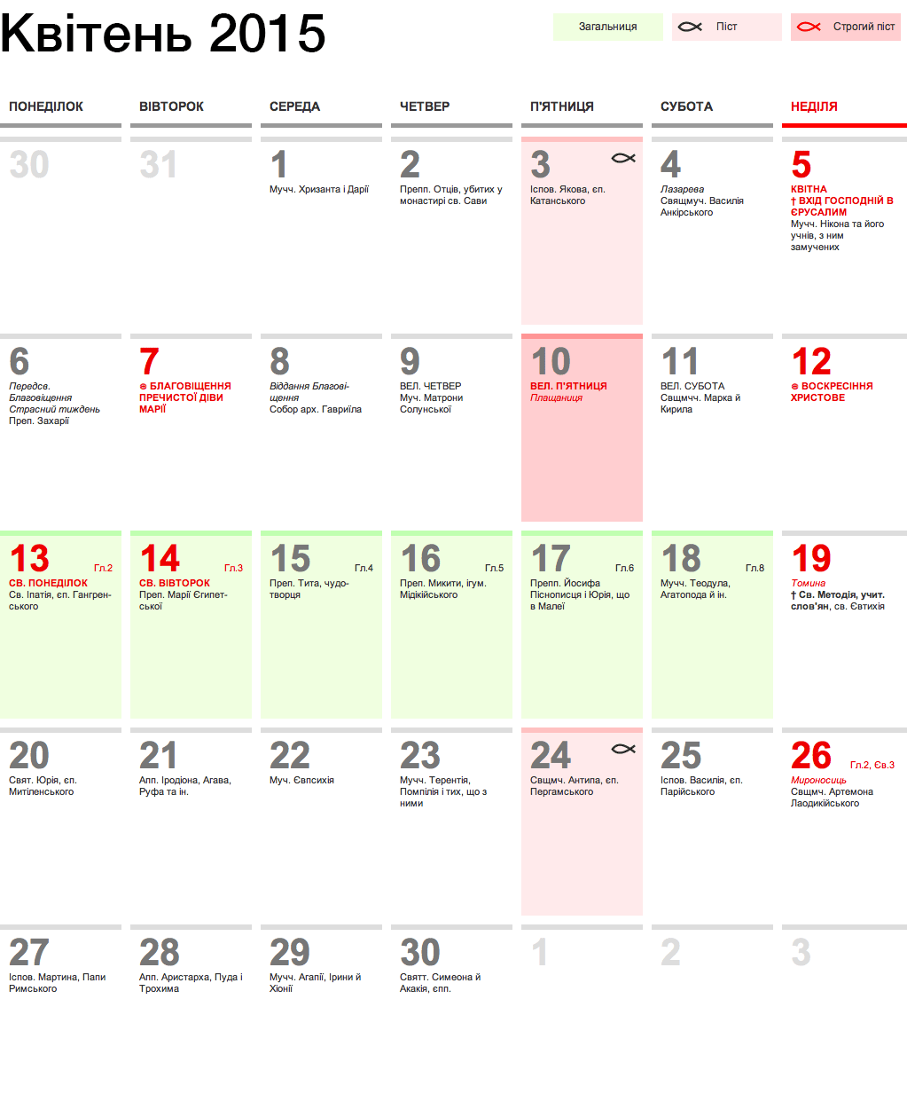 Церковний календар Української Греко-Католицької Церкви для мобільних пристроїв може бути завантажений в App Store або Google PlayВиберіть для себе вигляд календаря – режим “день” з розширеної інформацією, чи режим “місяць” зі скороченою.